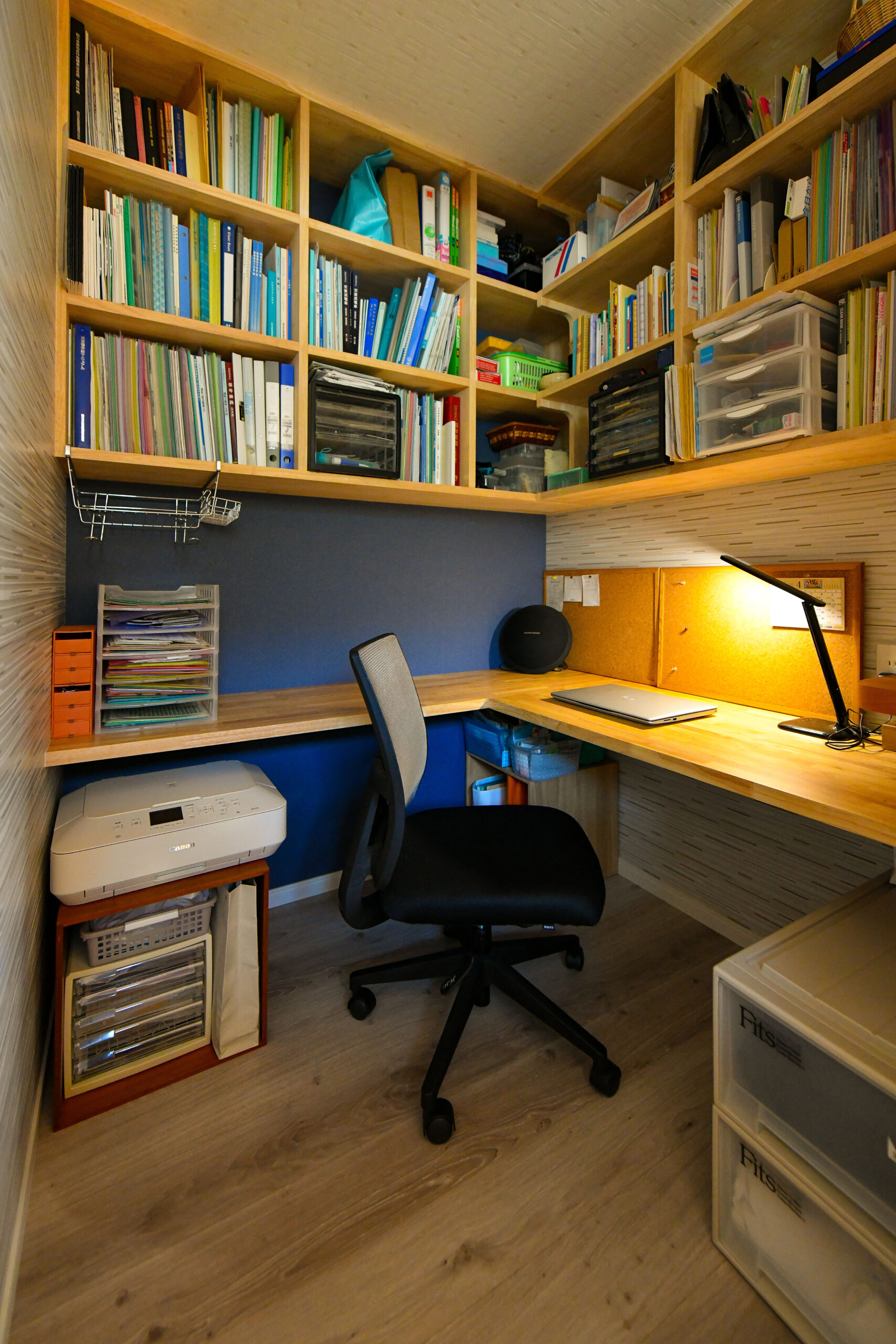 - 壁付けの本棚が便利な作業に集中できる書斎