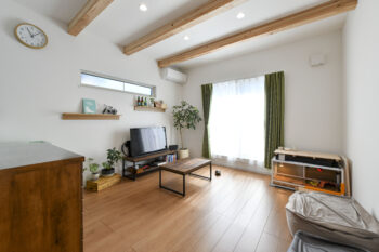 - 化粧梁が空間の広がりを演出するリビング空間