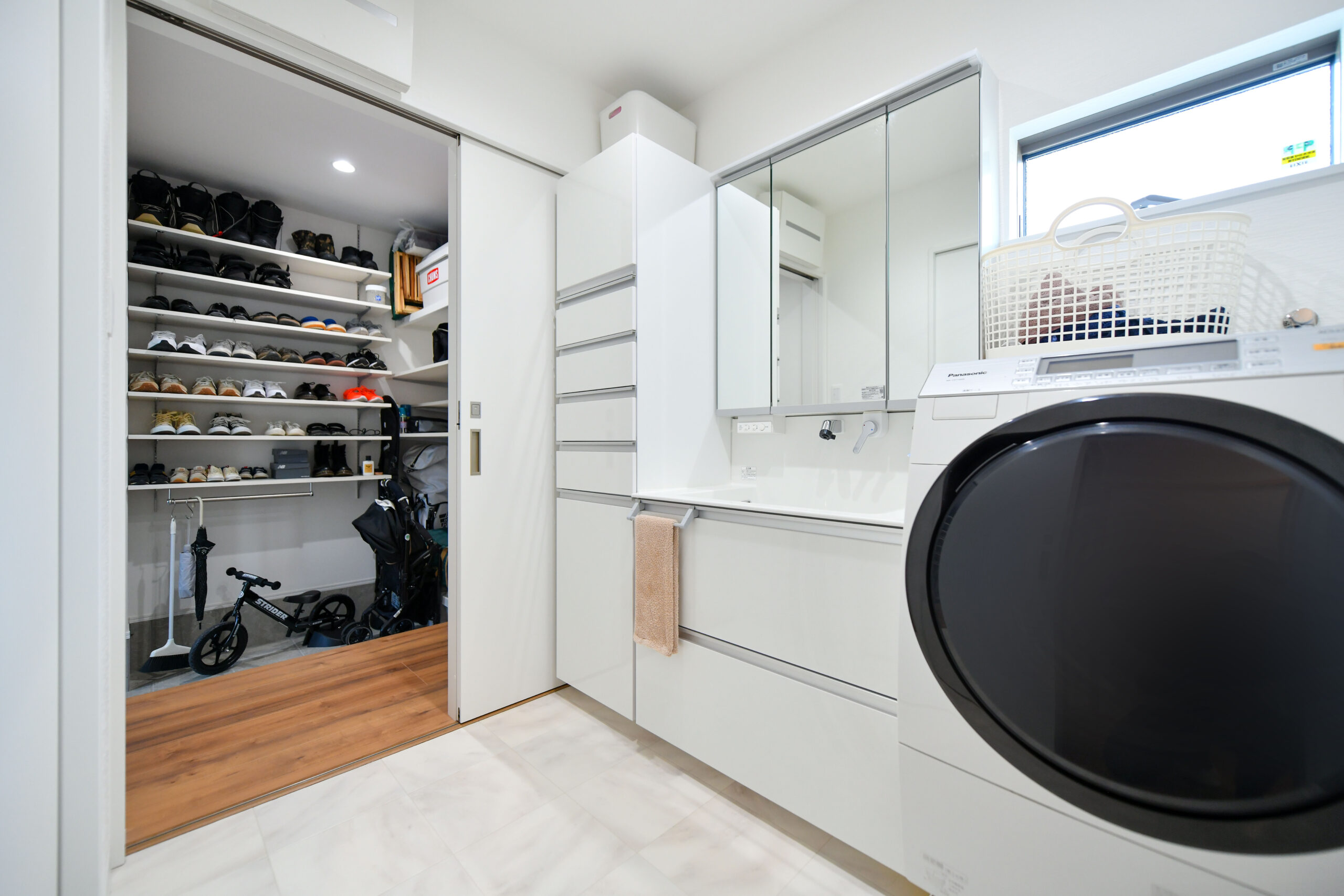 - 機能性に優れたシューズクローゼットと広々とした洗面所