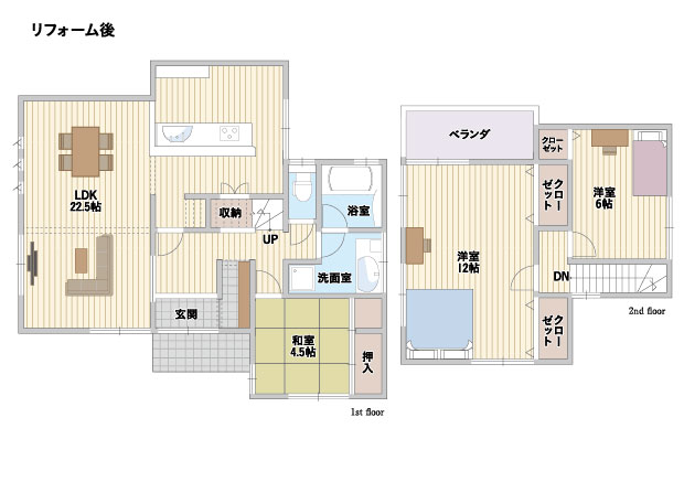 和室二間続き+DKを広いLDKへと、古い間取りを見事に刷新された。